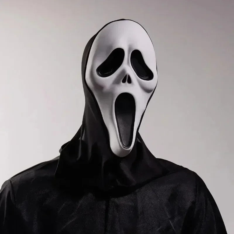 Created from natural latex with realistic detailing, this Ghostface full head mask delivers a terrifying and authentic look. Perfect for Halloween, themed parties, cosplay, and haunted houses.